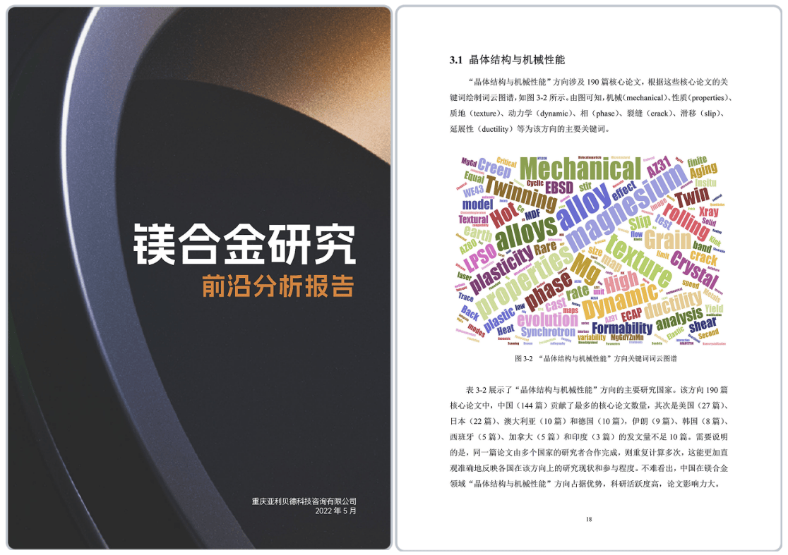 主要包含: 发文量、发文趋势、被引频次、研究前沿热点、基金项目、专利申请、师资团队、支撑平台、教学质量、学科建设、合作网络等。