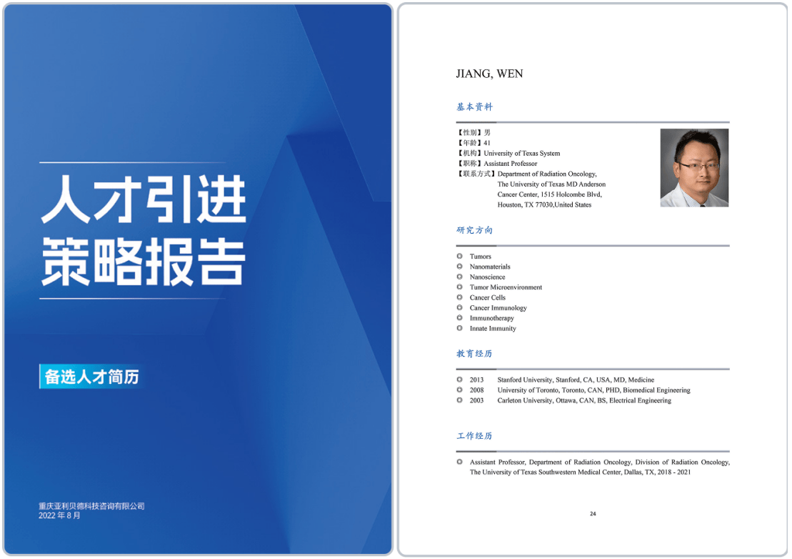 可针对机构提供高层次人才专项引进分析报告、人才培养与梯队建设分析报告、科研绩效评估分析报告、潜力青年教师引进分析报告等。